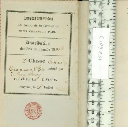 Keywords: Le Solitaire du mont Carmel. Episode des premiers temps du christianisme. Cinquieme edition. - Upper pastedown (c109e31).jpg Style Cartonnage publishers binding usually blocked paper; Caption Upper pastedown; Colour Unspecified; Edge Unspecified exhibition history Decorative Technique Unspecified; Cover Material Paper embossed Printed label upper paste down ; Institution des Soeurs del la Charite de Saint Vincent de Paul 1852 object history Text 1851; Tours; Unspecified object type Cc-zero place of creation Binding France place of discovery Unspecified British Library image http //www bl uk/catalogues/bookbindings/LargeImage aspx RecordId 020-000012398 ImageId ImageId 45804 Copyright BL Le Solitaire du mont Carmel Episode des premiers temps du christianisme Cinquieme edition Uploaded with GWToolset Le Solitaire du mont Carmel Episode des premiers temps du christianisme Cinquieme edition - Upper pastedown c109e31 http //www webarchive org uk/bldatasets/bindings/13485_3 jpg 19th-century bookbinding Bookbinding British Library Bookbindings |