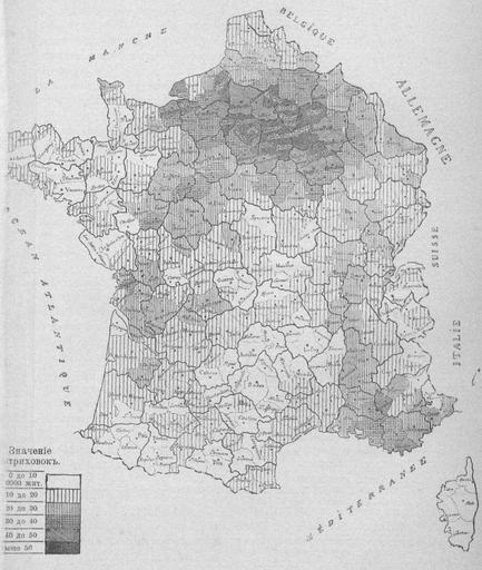 | Keywords: Le suicide (Durkheim, translation to Russian, 1912), page 153.jpg en Map of suicides in France by district 1887-1891 en Ка та самоубийств во Ф анции по егионам 1887-1891 1912 Э Дю кгейм «Самоубийство» СПб П Ка басников 1912 author other versions Custom license marker 2015 01 25 PD-RusEmpire Uploaded with UploadWizard Le suicide Durkheim translation to Russian 1912 | ||||