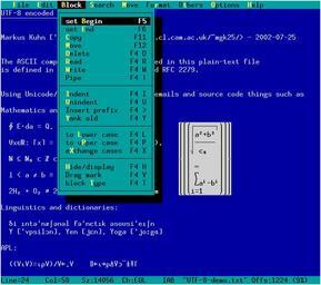 | Keywords: Le-utf-Rblock.png en LE editor screenshot with an UTF-8 example text and a rectangular block selected own screenshot Alexander Lukyanov 2008-08-19 Check categories 2008 November 19 en wikipedia LE_ text_editor Software Screenshots of free software Text user interface C++ |