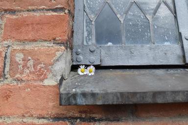 Keywords: lead-glass window brick section close romantic tradition architecture building historically red moment