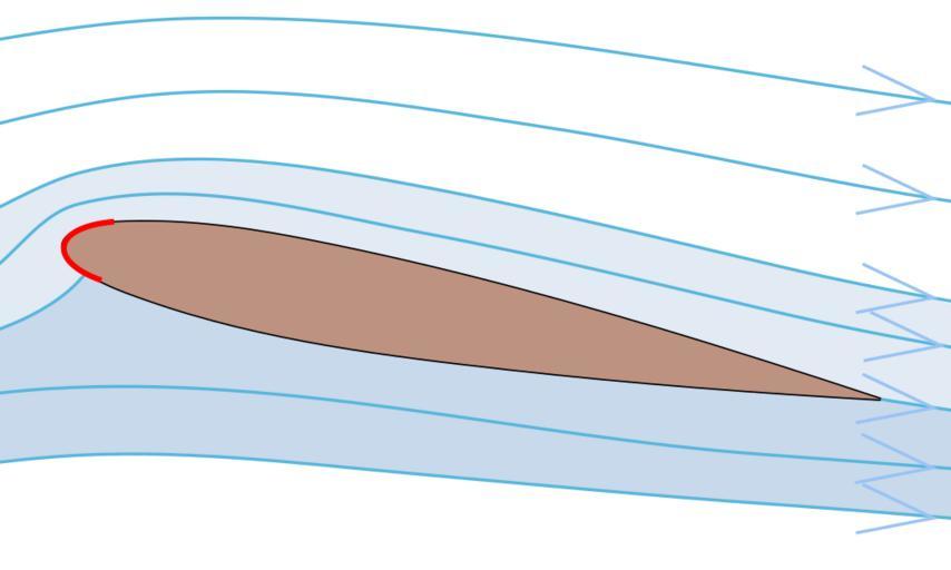 Keywords: Leading edge NACA 0012.svg Staupunkt own 2008-06 ILA-boy Modification based on Image Streamlines around a NACA 0012 svg by User Michael Belisle Diagrams of fluid flow past airfoils