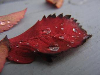 Keywords: leaf fall water drop macro red autumn