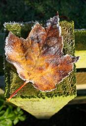 Keywords: leaf frost fence post nature outdoor frosted hoarfrost season green morning winter weather ice white freeze natural seasonal december stem leaves brown yellow frozen cold