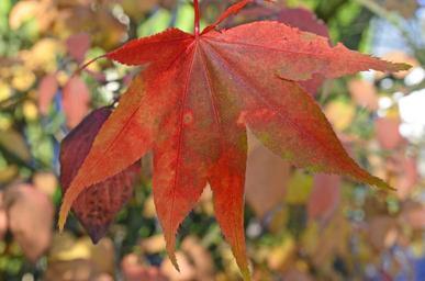 Keywords: leaf leaves autumn sun sunbeam red forest tree