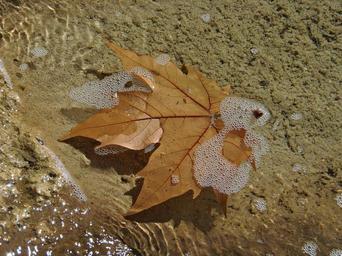 Keywords: leaf water bubbles sunset leaf floating water reflection wet autumn