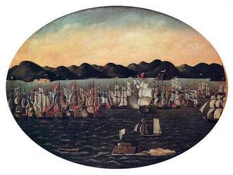 | Keywords: Leandro Joaquim - Esquadra Inglesa.jpg Artwork Creator Leandro Joaquim English Squadron Visiting Guanabara Bay Visita de uma Esquadra Inglesa na Baía de Guanabara Em primeiro plano o Forte da Laje End of the 18th century Oil on canvas cm 111 139 Museu Histórico Nacional Rio de Janeiro Brazil http //www museuhistoriconacional com br/images/galeria26/mh-g26a008 htm PD-old-100 Other versions Royal Navy Paintings in the Museu Histórico Nacional Guanabara Bay in art Fortresses in Brazil Paintings of Rio de Janeiro city Baroque paintings from Brazil 18th-century paintings from Brazil Paintings by Leandro Joaquim in the Museu Nacional de Belas Artes Seascape paintings in the Museu Nacional de Belas Artes |