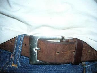 Keywords: Leather belt & buckle.jpg de Ledergürtel und Gürtelschnalle en Leather belt and belt buckle fr Ceinture en cuir et boucle de ceinture 2006-04-02 own assumed Joeyramoney~commonswiki Leather belts belt buckles