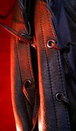 Keywords: leather pants red light lacing leather rivet