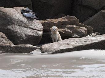 MAKE A MEME View Large Image leave lonely wait good dog master beach rock obedience
