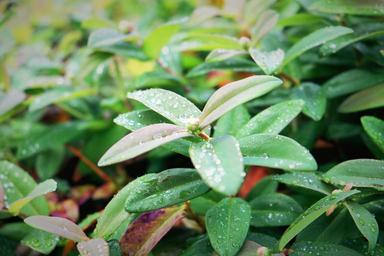 Keywords: leaves foliage green leafs greenery park dew water drops after rain summer rural close up macro nature