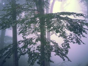 Keywords: leaves foliage tree plant sun shine through backlight morning forest nature wood branches sunlight