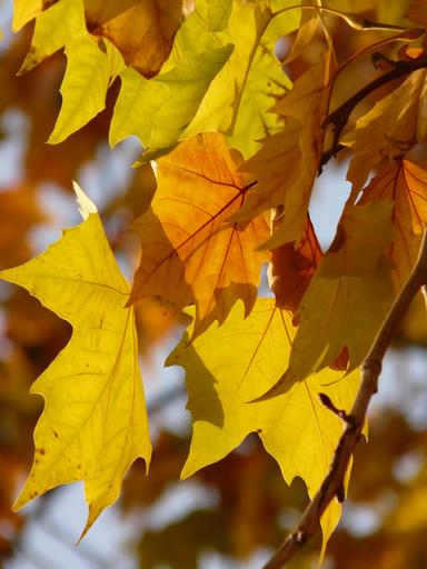 Keywords: leaves maple leaved plane bastard plane common plane hybrid plane london plane platanus hispanica plane platanaceae golden bright sun back light colorful color tree road autumn forest maple fruit