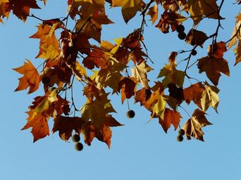 Keywords: leaves maple leaved plane bastard plane common plane hybrid plane london plane platanus hispanica plane platanaceae golden bright sun back light colorful color tree road autumn forest maple fruit