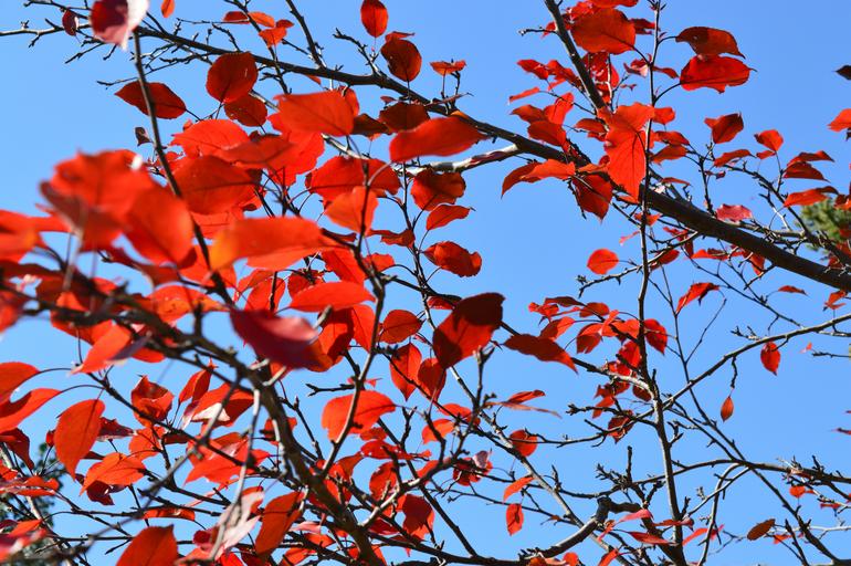 Keywords: leaves red autumn fall blue sky branch natural tree environment