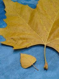 Keywords: leaves size comparison leaf leaf veins stalk rain wet maple leaf yellow fall color poplar leaf black poplar leaf autumn fall foliage