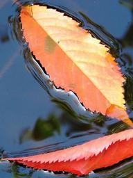 Keywords: leaves water autumn sheet in the water red blue orange