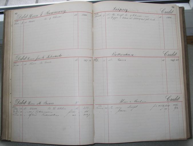 | Keywords: Ledger of the fur trader Dedo from Leipzig, 1876-1885 084.jpg Hauptbuch des Leipziger Rauchwarenhändlers Dedo 1986-1975 083 085 Herrn E Rosenzweig Leipzig Herrn Isack Schwartz Bottuschan Botoșani in Rumänien Herrn M Brass Hier Berlin Collection Kuhn 2010-12-29 14 58 57 Dedo <gallery>Ledger of the fur trader Dedo from Leipzig 1876-1885 084 Ausschnitt Brass jpg</gallery> PD-old Ledger of the fur trader Dedo in Leipzig 1876-1885 Furriers and fur traders of Leipzig named in the accountancy of Naoum Dedo in Leipzig Rosenzweig E Furriers in Botoșani Schwartz Isack Fur wholesale dealers in Berlin Brass M Fox fur-skins Emil Brass |
