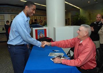 | Keywords: Lee Ermey San Diego 1.jpg en Former U S Marine Corps drill instructor turned Golden Globe-nominated actor R Lee Ermey signs an autograph for Petty Officer 2nd Class Maurice Elmore during a recent visit to Naval Medical Center San Diego Ermey visited the hospital supporting the Toys for Tots program and to show his appreciation for hospital staff and service members it Un militare della marina davanti a R Lee Ermey che sta firmando un autografo http //www dvidshub net/index php script images/images_gallery php action viewimage fid 137484 Petty Officer 2nd Class Greg Mitchell 2008-12-17 PD-USGov-Military-Navy R Lee Ermey 2008 in California Naval Medical Center San Diego Sitting handshakes Standing and sitting people |