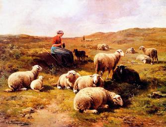 | Keywords: Leemputten shepherdess.jpg A shepherdess with her flock grazing - oil on canvas 41 x 56 5 cm repro from art book Cornelis van Leemputten 1841-1902 Author died more than 70 years ago - public domain PD-old Cornelis Van Leemputten Paintings of sheep Female shepherds in art |