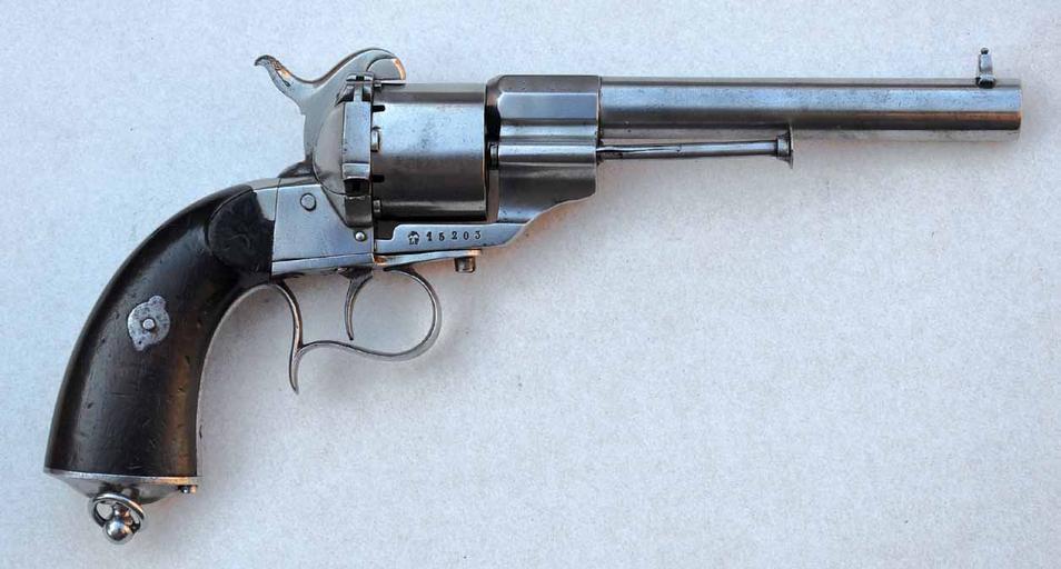 Keywords: Lef1.jpg en Norsk Lefaucheux revolver M/1859 for Marinen own Kvm1914 Cc-zero Lefaucheux revolver