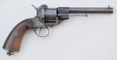 Keywords: Lef4.jpg en Norsk enkeltspent Lefaucheux revolver M/1864 innkjøpt fra Lefaucheux i Frankrike own Kvm1914 Cc-zero Lefaucheux revolver