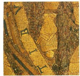 | Keywords: Left hand of Christ on the coronation pall.jpg author 1031 textile embroidery Institution Hungarian National Museum Budapest object history credit line accession number own scanned by Szilas from A magyar Szent Korona by Tóth Endre Szelényi Károly Kossuth 2000 Budapest PD-old-100 Coronation pall of Hungary |