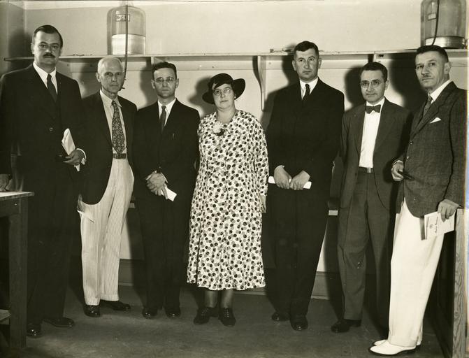 | Keywords: smithsonian institution smithsonianinstitution smithsonian institution archives smithsonianinstitutionarchives 2012 women's history month womenshistorymonth women in science womeninscience seven standing group portrait geneticists genetics print dress hat bowtie eyeglasses glasses 1937 1930s thirties scientists science biology medicine medical genetics medicalgenetics twin studies twinstudies cancer oncology ophthalmology eugenics canadian canadian eugenics society canadianeugenicssociety academia government private 20th century - early 20thcenturyearly groupshot people indoor monochrome Subject: Yale University School of Medicine        United States Public Health Service        University of Western Ontario        American Society of Human Genetics        University of Oslo        Memorial Hospital for Cancer and Allied Diseases of New York City        University of Paris Type: Black-and-white photographs Date: 1937     C. 1937 Topic: Women scientists Local number: SIA Acc. 90-105 [SIA2008-5337] Summary: In this photograph, titled "Most Famous Cancer Researchers in the World," are shown (left to right): geneticist Clarence Cook Little (1888-1971); physiologist Edgar Allen (1892-1943); biologist Howard Bancroft Andervont (1898-1981); geneticist Madge Thurlow Macklin (1893-1962); physician Leiv Kreyberg (b. 1896); biophysicist Gioacchino Failla (1891-1961); and radiation oncologist Henri Coutard (1876-1950). At the time the photograph was taken, Little headed the Roscoe B. Jackson Laboratory, Bar Harbor, Maine; Allen was professor of anatomy at Yale University Medical School; and Andervont was with the U.S. Public Health Service. Macklin was then associate professor of histology and Embryology at University of Western Ontario, and later served as president of the American Society of Human Genetics. Kreyberg taught at the University of Oslo; Failla was then working at the Cancer Memorial Hospital of New York City; and Coutard was chief of the department of x-ray therapy for cancer at the Radium Institute, University of Paris Cite as: Acc. 90-105 - Science Service, Records, 1920s-1970s, Smithsonian Institution Archivess Persistent URL:Link to data base record Repository:Smithsonian Institution Archives View more collections from the Smithsonian Institution. Subject: Yale University School of Medicine United States Public Health Service University of Western Ontario American Society of Human Genetics University of Oslo Memorial Hospital for Cancer and Allied Diseases of New York City University of Paris Type: Black-and-white photographs Date: 1937 C. 1937 Topic: Women scientists Local number: SIA Acc. 90-105 [SIA2008-5337] Summary: In this photograph, titled "Most Famous Cancer Researchers in the World," are shown (left to right): geneticist Clarence Cook Little (1888-1971); physiologist Edgar Allen (1892-1943); biologist Howard Bancroft Andervont (1898-1981); geneticist Madge Thurlow Macklin (1893-1962); physician Leiv Kreyberg (b. 1896); biophysicist Gioacchino Failla (1891-1961); and radiation oncologist Henri Coutard (1876-1950). At the time the photograph was taken, Little headed the Roscoe B. Jackson Laboratory, Bar Harbor, Maine; Allen was professor of anatomy at Yale University Medical School; and Andervont was with the U.S. Public Health Service. Macklin was then associate professor of histology and Embryology at University of Western Ontario, and later served as president of the American Society of Human Genetics. Kreyberg taught at the University of Oslo; Failla was then working at the Cancer Memorial Hospital of New York City; and Coutard was chief of the department of x-ray therapy for cancer at the Radium Institute, University of Paris Cite as: Acc. 90-105 - Science Service, Records, 1920s-1970s, Smithsonian Institution Archivess Persistent URL:Link to data base record Repository:Smithsonian Institution Archives View more collections from the Smithsonian Institution. |