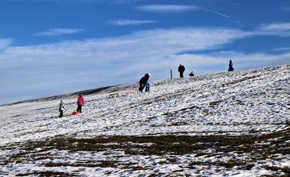 Keywords: leisure winter snow slide drive sleigh ride fun personal human hobby sky blue hill pull up winter sports sport runway