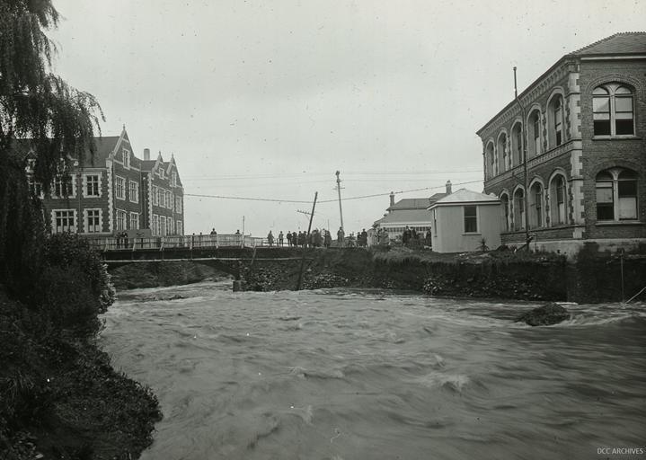 Leith_in_flood_at_Union_Street_Bridge_showing_Dental_School_and_School_of_Mines,_University_of_Otago_-_1923_Floods_in_Dunedin.jpg (1695x1207)