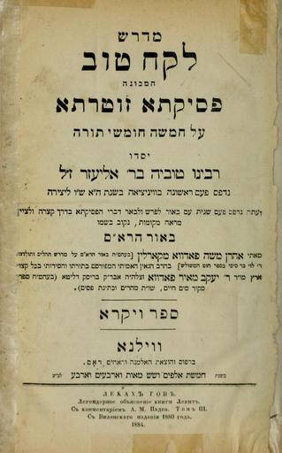 Keywords: Lekah Tov 1884.jpg en Lekah Tov 1884 https //archive org/details/midrashleaovhame0305tobi Tobiah ben Eliezer other versions Custom license marker 2016 04 21 PD-old 1884 books