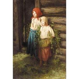 | Keywords: Lemoch Carl 008.jpeg Kirill Vikentevich Lemokh Karl Lemoch 1841-1910 Two Young Peasant Girls Ки илл Ка л Викентьевич Лемох 1841-1910 Двое к естьянских девочек Location частное соб ание <br> Dimensions 83х57 cm <br> Web source http //www sothebys com/app/live/lot/LotDetail jsp lot_id 44YY7 <br> Technique oil on canvas 1892 Creator Karl Lemoch PD-old-100 Karl Lemoch Temporary for Cat-a-lot - Female humans Paintings of Russian women in national dress Images from Sotheby's | ||||