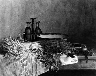 | Keywords: Léon Bonvin - Still Life with Cruets and Vegetables - Walters 371646.jpg cm 16 5 21 3 accession number 37 1646 16413 William T Walters Baltimore date and mode of acquisition unknown Henry Walters city Baltimore Walters Art Museum Henry Walters Acquired by William T Walters Signature and date In ink lower right Léon Bonvin 1863; Number In graphite center verso D4 and 3; Number In graphite lower left verso 9; Mark In graphite upper left verso X; Mark In red pencil upper right verso X The Essence of Line A Baltimorean in Paris George A Lucas 1860-1909 The Walters Art Gallery Baltimore 1979 The Drawings and Watercolors of Léon Bonvin The Cleveland Museum of Art Cleveland; The Walters Art Gallery Baltimore 1980-1981 The Realist Tradition French Painting and Drawing 1830-1900 Brooklyn Museum Brooklyn; The Cleveland Museum of Art Cleveland; Saint Louis Art Museum St Louis; Glasgow Art Gallery and Museum Glasgow 1980-1982 place of origin France Walters Art Museum license 2D The Essence of Line Paintings by Léon Bonvin in the Walters Art Museum Media contributed by the Walters Art Museum needs category review |
