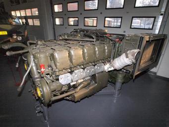 | Keywords: Leopard 1 Power-pack pic2.JPG Leopard 1 Power-pack Engine of the Leopard MTU MB 838 CaM 500 10-cylinder 37 4 litres multi-fuel engine The complete power pack consisting of the engine transmission and cooling system is provided with quick-disconnect couplings allowing the entire power pack to be replaced in the field within 20 minutes own 2010-01-26 15 06 09 AlfvanBeem CC-zero MTU MB 838 engine Leopard 1 tanks in the Cavaleriemuseum Amersfoort Military related photographs by Alf van Beem |