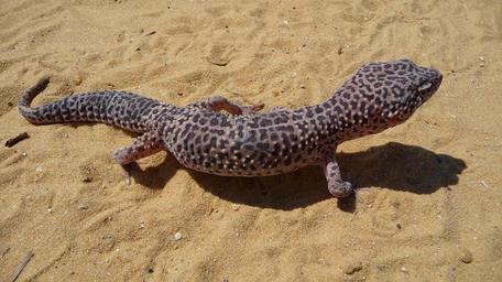 Keywords: leopard gecko lizard wild reptile sand ground dwelling outdoors nature wildlife coldblooded looking movable eyelids eublepharis macularius animal