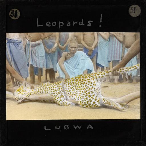 | Keywords: Leopard, Lubwa, Zambia, ca.1905-ca.1940 (imp-cswc-GB-237-CSWC47-LS6-031).jpg en <br> Leopard Lubwa Zambia ca 1905-ca 1940 Leopard Close up photograph of a leopard The leopard is tied to a wooden pole presumably having been killed during a hunt One man is sitting behind the leopard and a group of people can be seen from the waist down standing in the background of the picture ; This belongs to a series of Church of Scotland Foreign Missions Committee lantern slides relating to Lubwa mission Lubwa mission at Chinsali in north-eastern Zambia began as an outpost of the Free Church of Scotland mission in Malawi The first missionary expeditions to the Chinsali area were carried out by student teachers from the Overtoun Institute at Khondowe The Bemba are the largest ethnic group in northern Zambia and the first Free Church of Scotland establishment among the Bemba was a school at Lubwa opened in 1905 by the Malawian teacher David Kaunda and his wife Photographer Unknown Filename imp-cswc-GB-237-CSWC47-LS6-031 tif Coverage date 1905/1940 Part of collection International Mission Photography Archive ca 1860-ca 1960 Type images Part of subcollection Photographs from the Centre for the Study of World Christianity University of Edinburgh U K ca 1900-ca 1940s Repository name Centre for the Study of World Christianity Archival file impaunpub_Volume7/1591 url Repository address The University of Edinburgh School of Divinity New College Mound Place Edinburgh EH1 2LX United Kingdom Geographic subject country Zambia Format aacr2 1 lantern slide 8 x 8 cm Geographic subject continent Africa Rights Contact the repository for details Part of series Lubwa LS6 Repository email divinity-CSWC ed ac uk Subject lcsh Keyword Animals Date created 1905/1940 Publisher of the digital version University of Southern California Libraries Subject aat genre close up views Format aat lantern slides Legacy record ID impa-m68693 Access conditions http //www ed ac uk/schools-departments/divinity/research/centres/world-christianity/collections-resources File GB 237 CSWC47/LS6/31 1905/1940 author http //digitallibrary usc edu/cdm/ref/collection/p15799coll123/id/64711 PD-old-70-1923 Magic lantern images Images from USC Digital Library uploaded by Fæ International Mission Photography Archive ca 1860-ca 1960 |