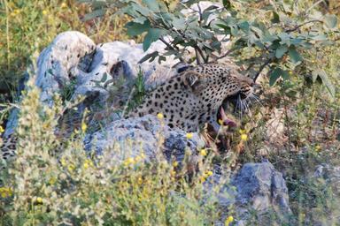 Keywords: leopard yawn tired wake up concerns animal africa namibia etosha safari