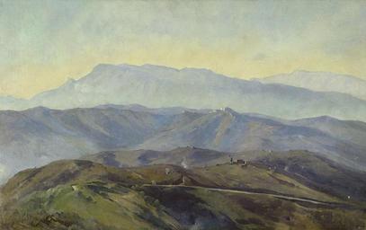 | Keywords: Leopold Rottmann (attr) Gebirgslandschaft bei Olevano.jpg Leopold Rottmann zugeschrieben Gebirgslandschaft bei Olevano im Dunst Öl auf Leinwand 36 5 x 57 7 cm Verso mit Klebeetikett Italien/Berge bei Olevano ebenda von fremder Hand bez Karl Rottmann 18 8 attributed to Leopold Rottmann Mountain view near Olevano in the fog Oil on canvas 36 5 x 57 5 cm http //www bassenge com century 19 field PD-old Leopold Rottmann Landscape paintings of Italy Olevano Romano in art Images from Galerie Bassenge Fog in art |