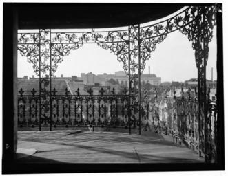 | Keywords: LePretre Mansion Gallery Towards Municipal Auditorium 1936.jpg Le Pretre Mansion 716 Dauphine Street New Orleans Louisiana View from upper gallery looking back along Orleans Street towards the Municipal Auditorium 1936 Historic American Building Survey photo by Richard Koch Via Library of Congress website http //hdl loc gov/loc pnp/hhh la0024 Photo 9; border corpped contrast adjusted and converted from TIF to jpg before uploading to Wikimedia Commons 1936-10 Richard Koch PD-USGov 1936 in New Orleans Orleans Street French Quarter Black and white photographs of the French Quarter Balconies in the French Quarter Municipal Auditorium New Orleans |