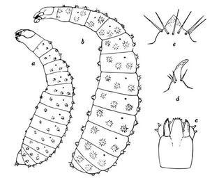 | Keywords: Leptogenys.elongata.larvae.-.wheeler.svg Leptogenys elongata a young b adult larva; c head of adult larva dorsal aspect ; d tubercle of young e of adult larva Wheeler W M 1900 A study of some Texan Ponerinae Biological Bulletin 2 1-31 http //antbase org/ants/publications/10486/10486 pdf PDF 1900 W M Wheeler pd-old PD-old Drawings of animals by William Morton Wheeler Drawings of ants Leptogenys elongata | ||||
