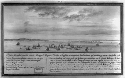 | Keywords: L'escadre francoise devant New-York.jpg fr L'escadre françoise mouillée devant New-york bloquant l'escadre Angloise et interceptant les batimes qui vouloient y entrer - le 12 juillet 1778 en French squadron anchored off New York blockading English squadron and intercepting ships attempting to enter - 12 July 1778; aquatint http //hdl loc gov/loc pnp/cph 3a04791 Library of Congress ref LC-USZ62-899 Ozanne Pierre artist and engraver 1778 PD-old-100 PD-old-100 Military under Louis XVI of France 1774-1792 Pierre Ozanne American Revolutionary War |