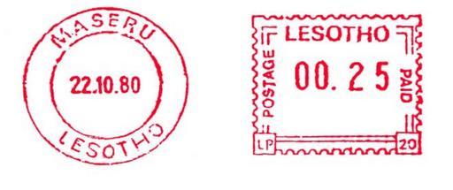 Keywords: Lesotho stamp type BB3.jpg en Meter stamp catalog image Lesotho type BB3 Richard Stambaugh Richard Stambaugh 2011-11-13 Meter stamps of Lesotho