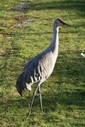Keywords: lesser sandhill crane bird standing wildlife nature portrait large outdoors grass