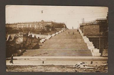 | Keywords: Lestniza fel'dmana.jpg en Famous Big Steps in Odessa were named after anarchist Alexander Feldman in 1919 - 1941 Post Card dated 1934 ru Знаменитая Потемкинская лестница в Одессе в довоенный пе иод с 1919 по 1941 годы носила имя одного из деятелей Одесского Совета ана хиста Александ а Фельдмана Почтовая отк ытка 1934 года own HOBOPOCC PD-Ukraine Potemkin Stairs Postcards of Odessa |