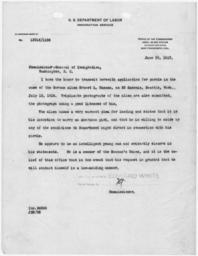 | Keywords: Letter from Commissioner of Immigration, Angel Island Station, to Commissioner General of Immigration regarding enemy... - NARA - 296437.jpg Scope and content This document is from a case concerning German native Ernst Hamann who had the misfortune to arrive in the U S a few days after President Wilson's anti-enemy alien proclamation of April 6 1917 Hamann was interned on Angel Island in San Francisco Bay General notes 296437 Local identifier Department of Justice Immigration and Naturalization Service San Francisco District Office - NARA's Pacific Region San Bruno NRHAS 1000 Commodore Drive San Bruno CA 94066-2350 1917-06-25 Record group Record Group 85 Records of the Immigration and Naturalization Service 1787 - 2004 Record group ARC 414 Case Files of Investigations Not Resulting in Warrant Proceedings in the San Francisco District and Investigations Within the San Francisco District at the Request of Other Service Offices compiled 1912 - 1944 Series ARC 296429 File unit Investigation Case File 12016/01106 -- Enemy Aliens 1916 - 1929 File unit ARC 296430 Variant control numbers NAIL Control Number NRHS-85-INSSF-HAMANN1106-7 Other versions <gallery> File Letter_from_Commissioner_of_Immigration _Angel_Island_Station _to_Commissioner_General_of_Immigration_regarding_enemy _-_NARA_-_296437 tif tif File Letter_from_Commissioner_of_Immigration _Angel_Island_Station _to_Commissioner_General_of_Immigration_regarding_enemy _-_NARA_-_296437 jpg jpg </gallery> NARA-cooperation PD-USGov Internment in World War I Documents related to Angel Island 1917 German American history Immigrants to the United States |