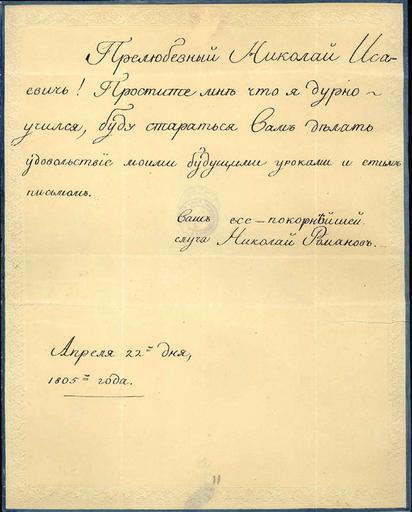 Keywords: Letter from Nicholas Romanov, 1805.jpg ru Письмо великого князя иколая Павловича своему воспитателю И Ахве дову от 22 04 1805 2012-08-25 http //www rusarchives ru/evants/exhibitions/pavel/68 shtml Nicholas I of Russia Nicholas I of Russia PD-Art Uploaded with UploadWizard Nicholas I of Russia's items Signatures of Russian monarchs