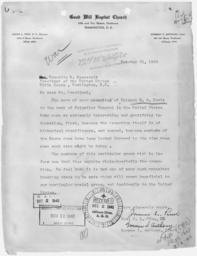 | Keywords: Letter from Reverend James L Pinn, D.D. and Norman S. Anthony of Washington, D.C., pastor and clerk, respectively, of... - NARA - 299755.tif Scope and content Letter from Reverend James L Pinn D D and Norman S Anthony of Washington D C pastor and clerk respectively of Good Will Baptist Church Washington to President Roosevelt expressing the whole-hearted endorsement of Colonel Davis' promotion by the members of their church and stating that the Negro race have long looked forward to the time when some such step might be taken General notes 299755 Local identifier Department of Defense Department of the Army U S Total Army Personnel Command 12/08/1988 - 10/01/2003 NARA's National Personnel Records Center Military Personnel Records NRPM 9700 Page Avenue St Louis MO 63132-5100 1940-10-31 Record group Record Group 319 Records of the Army Staff 1903 - 2009 Record group ARC 633 Official Military Personnel Files compiled 1912 - 1998 Series ARC 299741 File unit Official Military Personnel File of Benjamin O Davis ca 1898 - ca 1948 File unit ARC 299742 Variant control numbers NAIL Control Number NRPM-319-OMPF-DAVISBENJ-PINNANTHONY yes Other versions <gallery> File Letter_from_Reverend_James_L_Pinn _D D _and_Norman_S _Anthony_of_Washington _D C _pastor_and_clerk _respectively _of _-_NARA_-_299755 tif tif File Letter_from_Reverend_James_L_Pinn _D D _and_Norman_S _Anthony_of_Washington _D C _pastor_and_clerk _respectively _of _-_NARA_-_299755 jpg jpg </gallery> NARA-cooperation PD-USGov NARA TIF images with categorized JPGs |