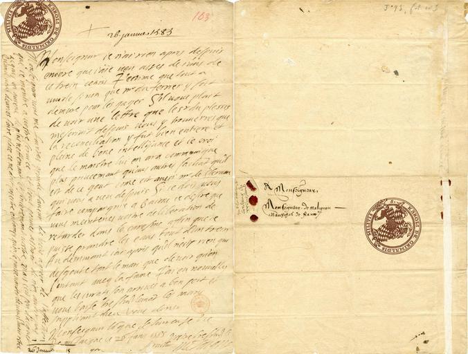 | Keywords: Lettre de Montaigne au maréchal de Matignon, 26 janvier 1585.jpg Lettre de Montaigne au maréchal de Matignon 26 janvier 1585 Letter from Michel de Montaigne to the Marechal de Matignon 26 January 1585 1585-01-26 <poem> Monseignur ie n ai rien apris despuis encore que i aïe ueu asses de ians de ce trein ceans I estime que tout a uuide si non que mr du ferrier y soit demure pour les gages S il uous plait de uoir une lettre que le sr du plessis m escriuit despuis uous y trouuerres que la reconciliation y fut bien entiere et pleine de bone intellijance et ie croi que le maistre lui en ara communique plus priueemant qu aus autres sachāt qu il est de ce gout come est aussi mr de Cleruan qui uous a ueu despuis Si ie dois uous faire compaignie a Baione ie desire que uous meintenes uostre deliberation de retarder dans le caresme affin que ie puisse prandre les eaus tout d un trein Au demurant iai apris qu il n est rien qui desgoute tant le mari que de uoir qu on s entant aueq la fame I ai eu nouuelles que les iurats son sont arriues a bon port et uous baise treshūblemāt les meins suppliant dieu vous doner Monseignur lōgue hureuse vie De mōtaigne ce 26 Ianu 1585 Vostre treshūble seruitur mōtaigne </poem> Palais de Monaco Archives accession number J 132 http //www bvh univ-tours fr/Consult/consult asp numtable XAPP_Montaigne_J132_2 numfiche 1126 mode 3 offset 0 ecran 0 Biblio de Tours Creator Michel de Montaigne PDF Assessments 1 picture of the day 2014 03 06 PD-old-100 Michel de Montaigne Letters written messages Featured pictures of Indre-et-Loire Featured pictures by Yann Forget Collections of the Princely Palace of Monaco |