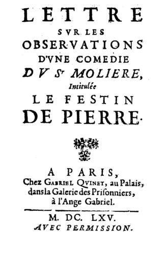 Keywords: Lettre sur les Observations.jpeg Lettre sur les Observations 1665 BNF-Arsenal 1665 author Dom Juan ou le Festin de pierre PD-old-100