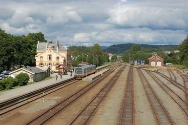 Keywords: Levanger stasjon 1.jpg Levanger Station on Nordlandsbanen in Levanger Norway; NSB Type 92 diesel multiple unit commuter train Own Alasdair McLellan 2008-06-26 63 744731 11 300719 NSB type 92 Levanger stasjon Rail tracks in Norway