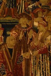 | Keywords: LevenPaulus.JPG nl Detail uit het laatste wandtapijt van de vierdelige reeks Onze-Lieve-Vrouw van de Zavel toegeschreven aan de jonge Bernard van Orley Frans van Taxis neemt de stichtingsakte van het postwezen in ontvangst van Keizer Frederik III en Detail of the last tapestry of the four-part series Our Lady of the Zavel attributed to the young Bernard van Orley Francis of Taxis receives the postal charter from the hands of emperor Frederick III 2015-07-08 11 29 09 own Karmakolle other versions cc-zero Uploaded with UploadWizard Our Lady of the Zavel tapestries Tapestries in the Jubilee Park Museum Frederick III Holy Roman Emperor Franz von Taxis |